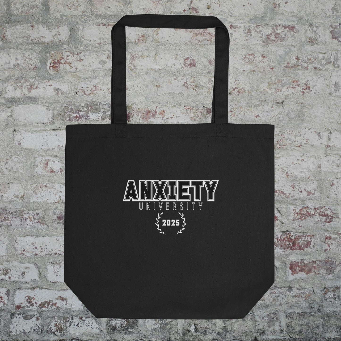 Carry your books and materials in style with this eco-friendly Anxiety University Tote Bag. Crafted with organic cotton for a sustainable and stylish look, this bag is the perfect option for any student.