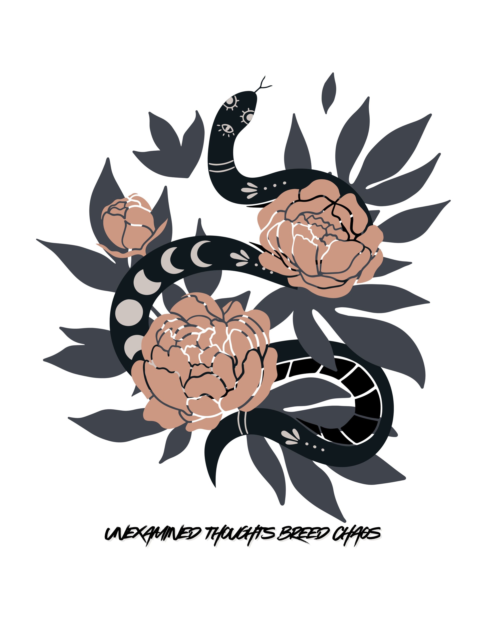 Make a bold statement in our Unexamined Thoughts Breed Chaos hoodie. Featuring a striking design of a snake weaving through delicate flowers, this piece blends strength with vulnerability—symbolizing how unexamined thoughts can entangle the mind. Soft, cozy, and empowering, this hoodie is perfect for staying comfortable while sparking conversations about mindfulness and mental wellness.